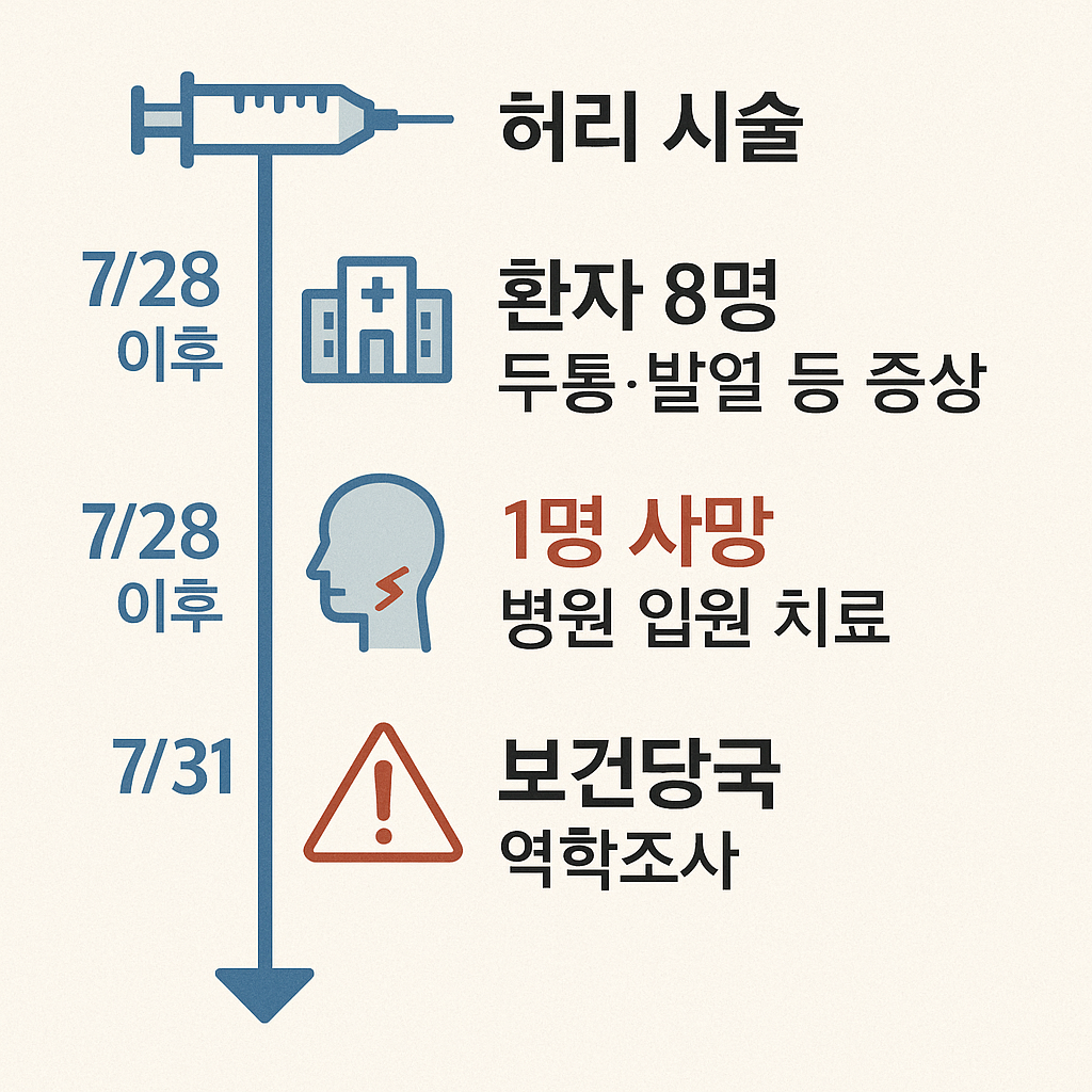2025λ 7μ, κ°λ¦μ ν μμκΈ λ³μμμ ν리 ν΅μ¦ μνλ₯Ό μν μ κ²½ μ°¨λ¨μ μ λ°μ νμ 8λͺ μ΄ λ©°μΉ λ΄λ‘ κ·Ήμ¬ν λν΅, κ³ μ΄, μμ μ ν μ¦μμ 보μ΄λ©° λ³μμ μ€λ €κ°μ΅λλ€. μ΄ μ€ 1λͺ μ μΉλ£ μ€ μ¬λ§νκ³ , λλ¨Έμ§ 7λͺ λ μ€νμμ€ νΉμ μΌλ°λ³μ€μμ μΉλ£λ₯Ό λ°λ μ€μ λλ€. νμλ€μ νμ‘κ³Ό λμ²μμ‘μμ ν©μν¬λμκ· (MSSA)μ΄ κ²μΆλμκ³ , λ³μ λ΄λΆ μλ£κΈ°κ΅¬, μλ£μ§ μ, μμ μ€ νκ²½μμλ λμΌν μΈκ· μ΄ λ¬΄λ € 16건μ΄λ λ°κ²¬λμμ΅λλ€. μ§λ³κ΄λ¦¬μ²μ μ μ μ λΆμμ μ§ν μ€μ΄λ©°, κ°μλ 보건λΉκ΅μ μμ μ 269λͺ μ μμ λν μ μμ‘°μ¬μ λμ νμ΅λλ€. ν΄λΉ λ³μμ νμ¬ ν΄μ§ μνμ λλ€.