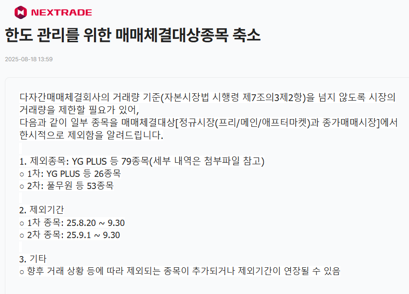 ์ด๋ฒ ์กฐ์น๋ ์ด 79๊ฐ ์ข ๋ชฉ์ ์ ๊ท์ฅ ์ธ ์๊ฐ(ํ๋ฆฌ์ฅ·์ ํํฐ๋ง์ผ) ๋งค๋งค์ฒด๊ฒฐ๋์์์ ์ ์ธํ๋ ๋ฐฉ์์ ๋๋ค. ์ ๊ท์ฅ(์ค์ 9์~์คํ 3์ 30๋ถ) ๊ฑฐ๋๋ ํ๊ตญ๊ฑฐ๋์(KRX)์์๋ง ๊ฐ๋ฅํฉ๋๋ค.