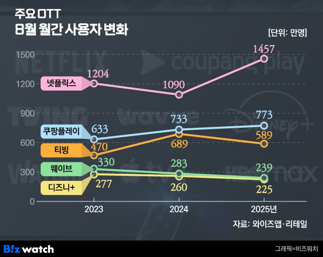 | 4์ | ์จ์ด๋ธ | 239๋ง๋ช | ์ง์ํ ์ฐํฉ OTT |